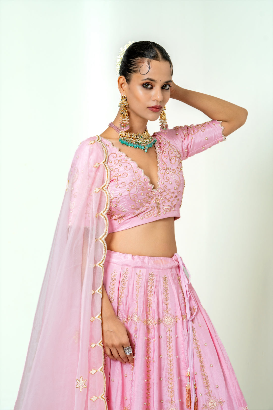 Blush Pink Pearl Work Lehenga Set