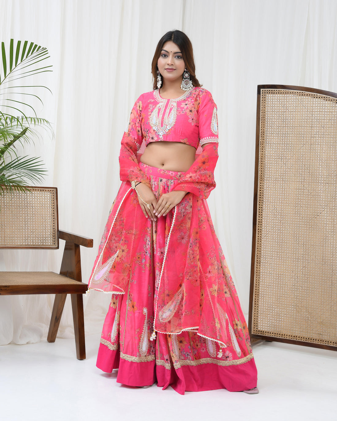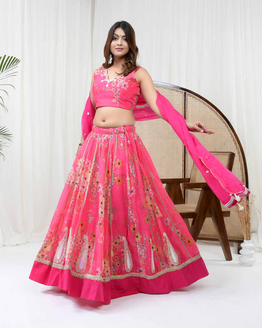 Hot Pink Chanderi Lehenga Set