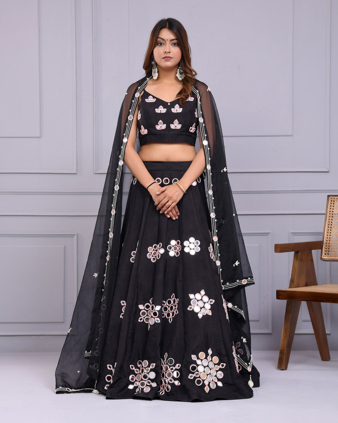 Black Mirror & Bead Work Lehenga Set