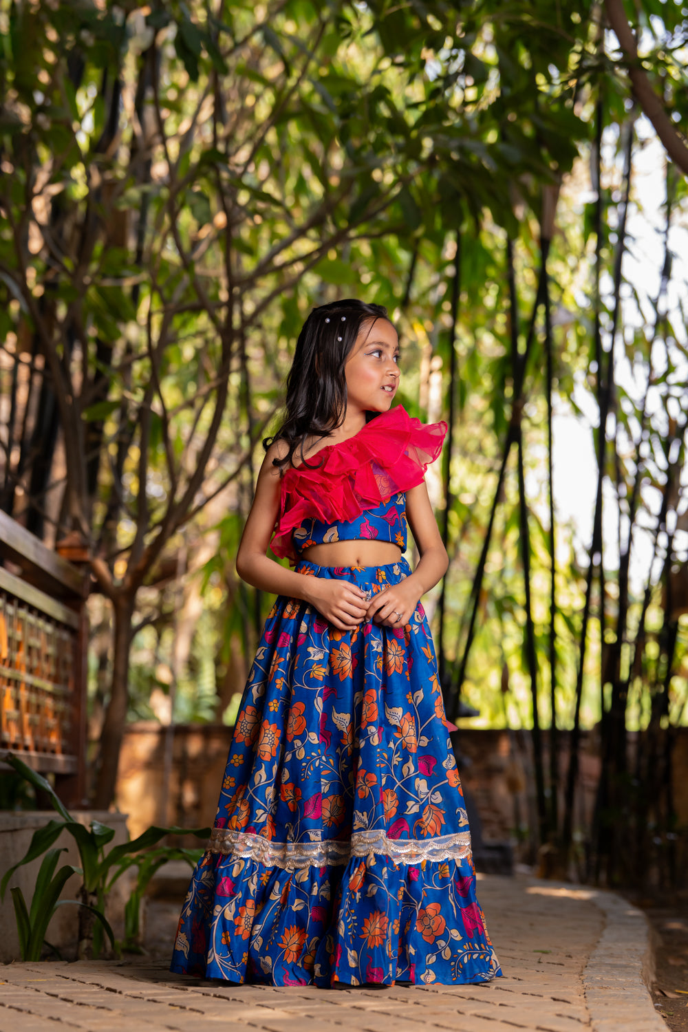 Blue Printed Lehenga set for Girls