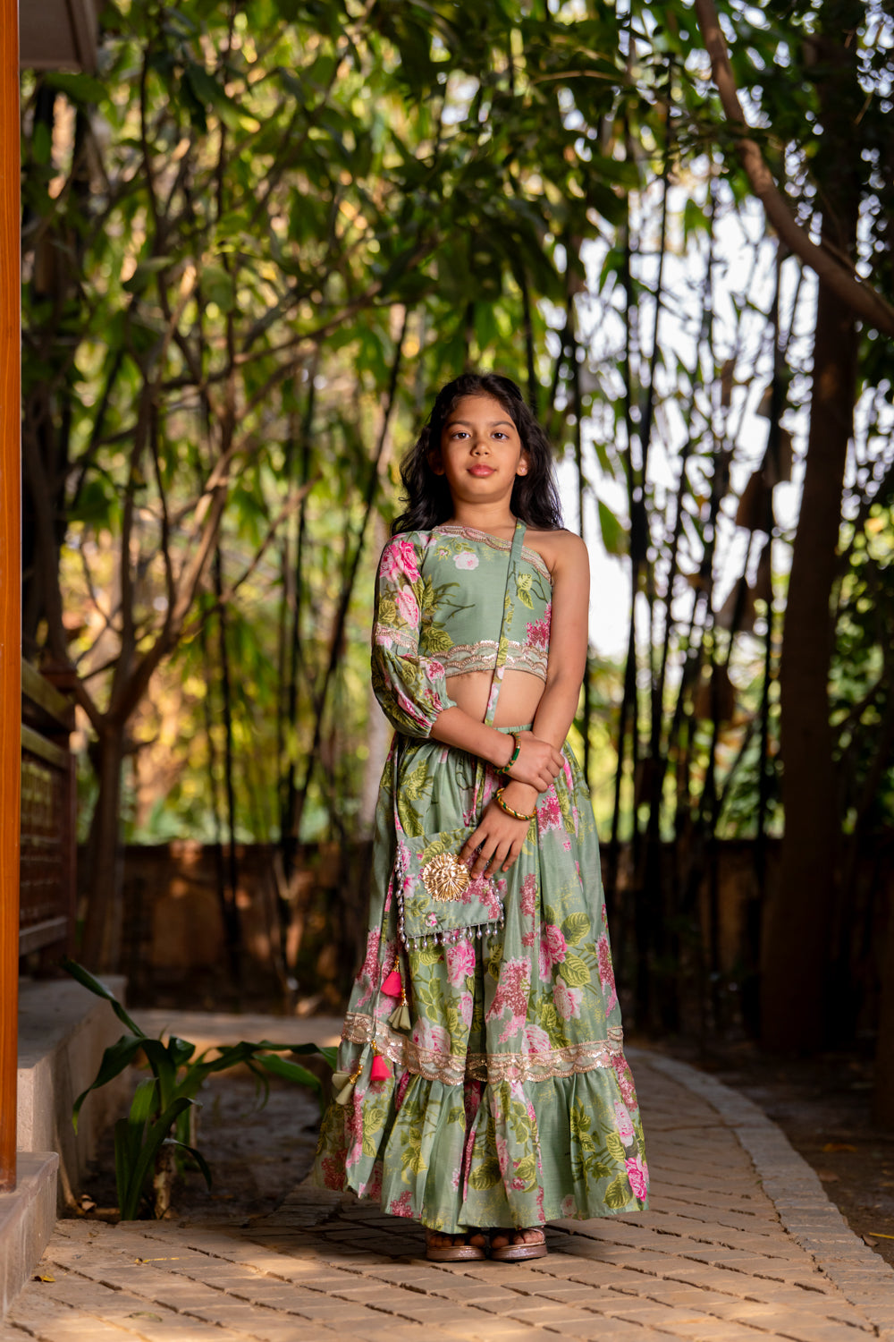 Mint Green Printed Lehenga set for Girls