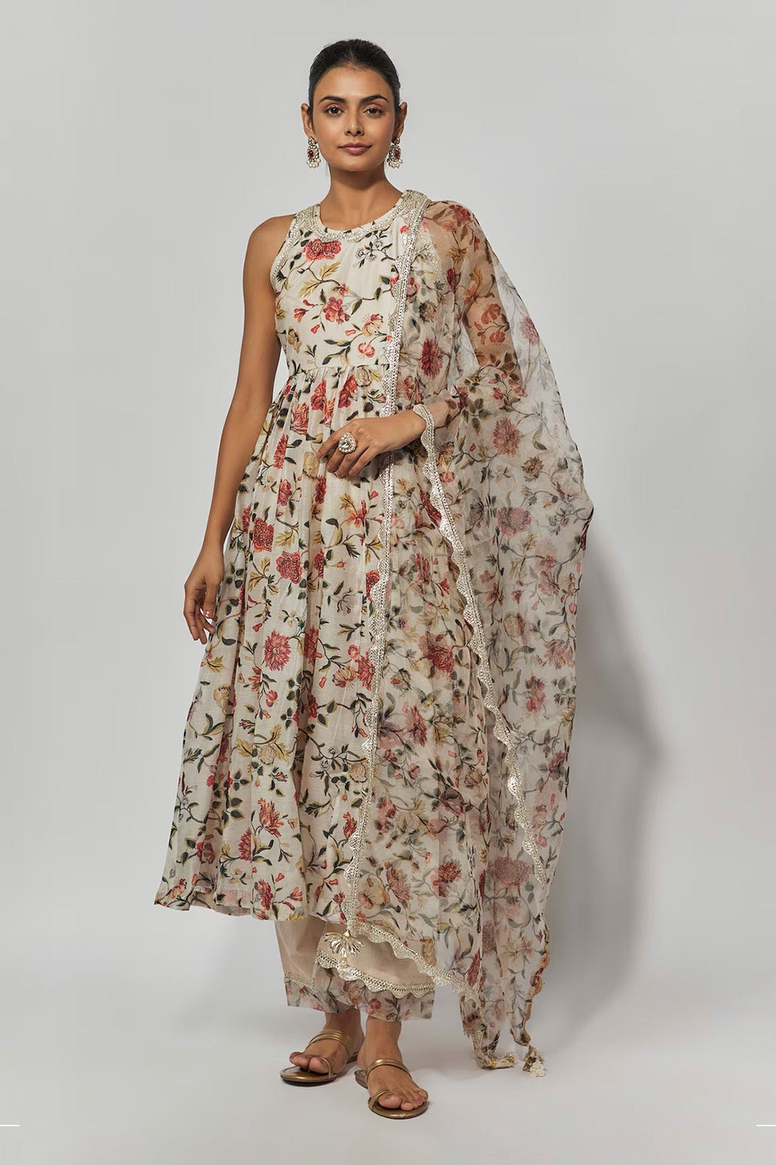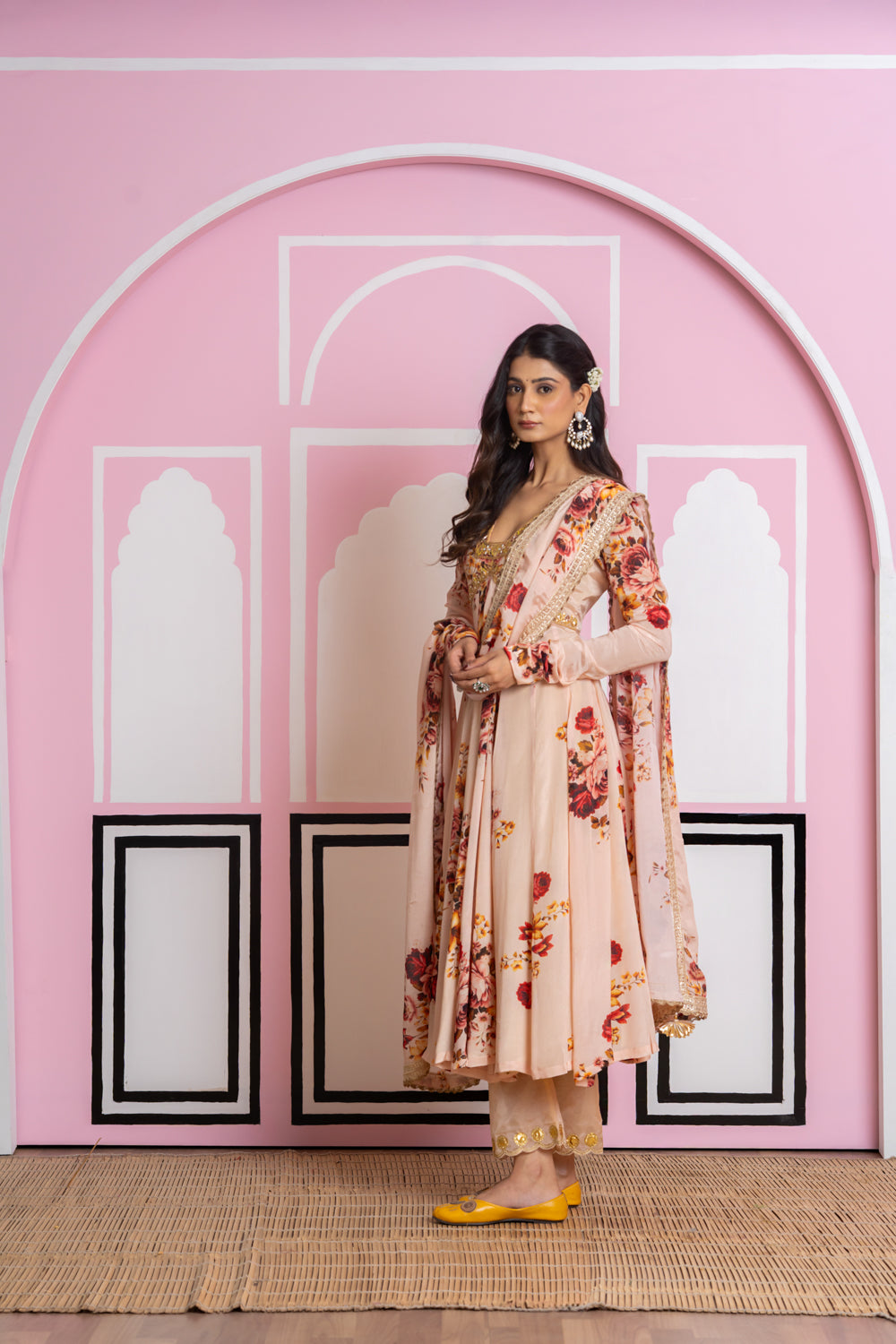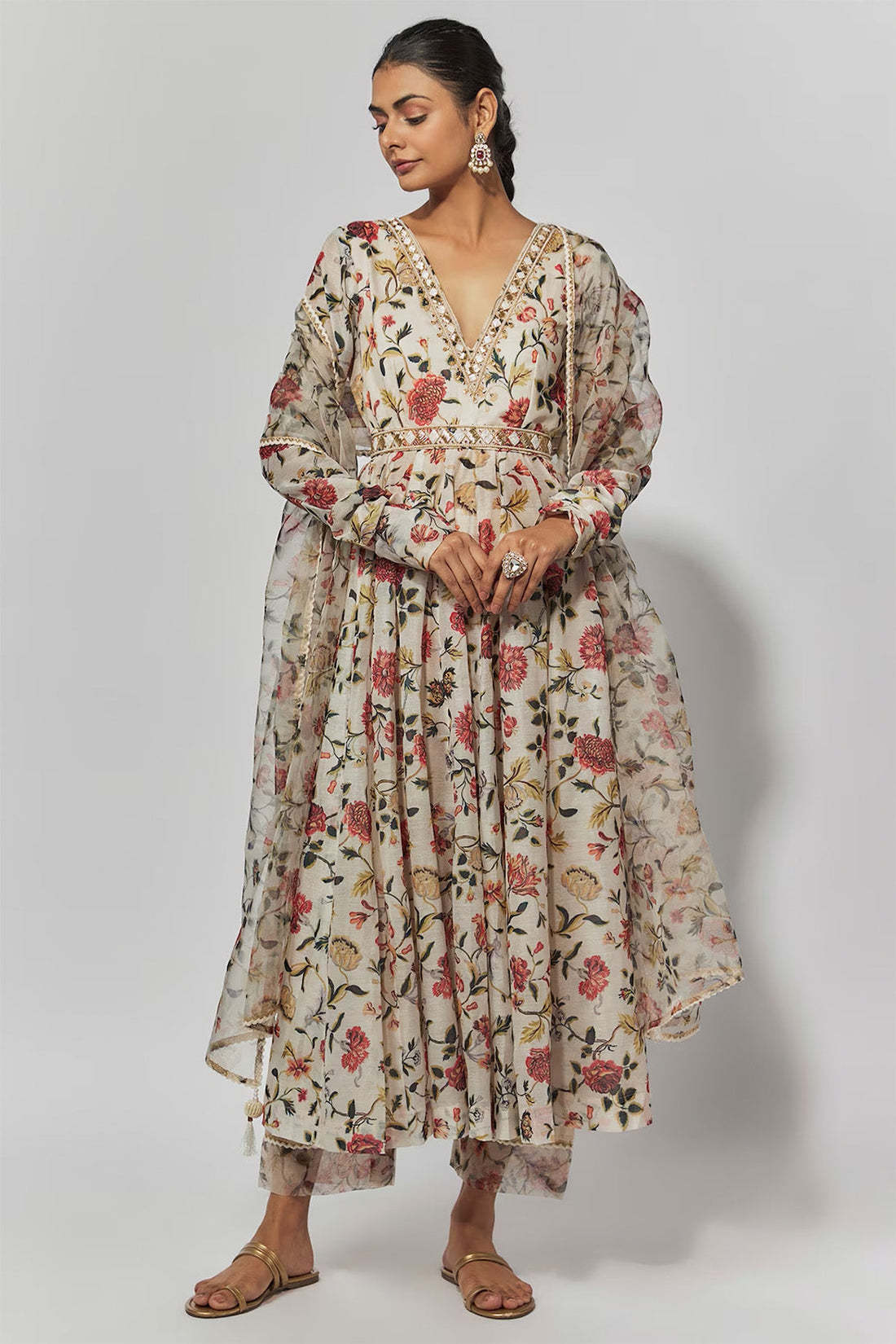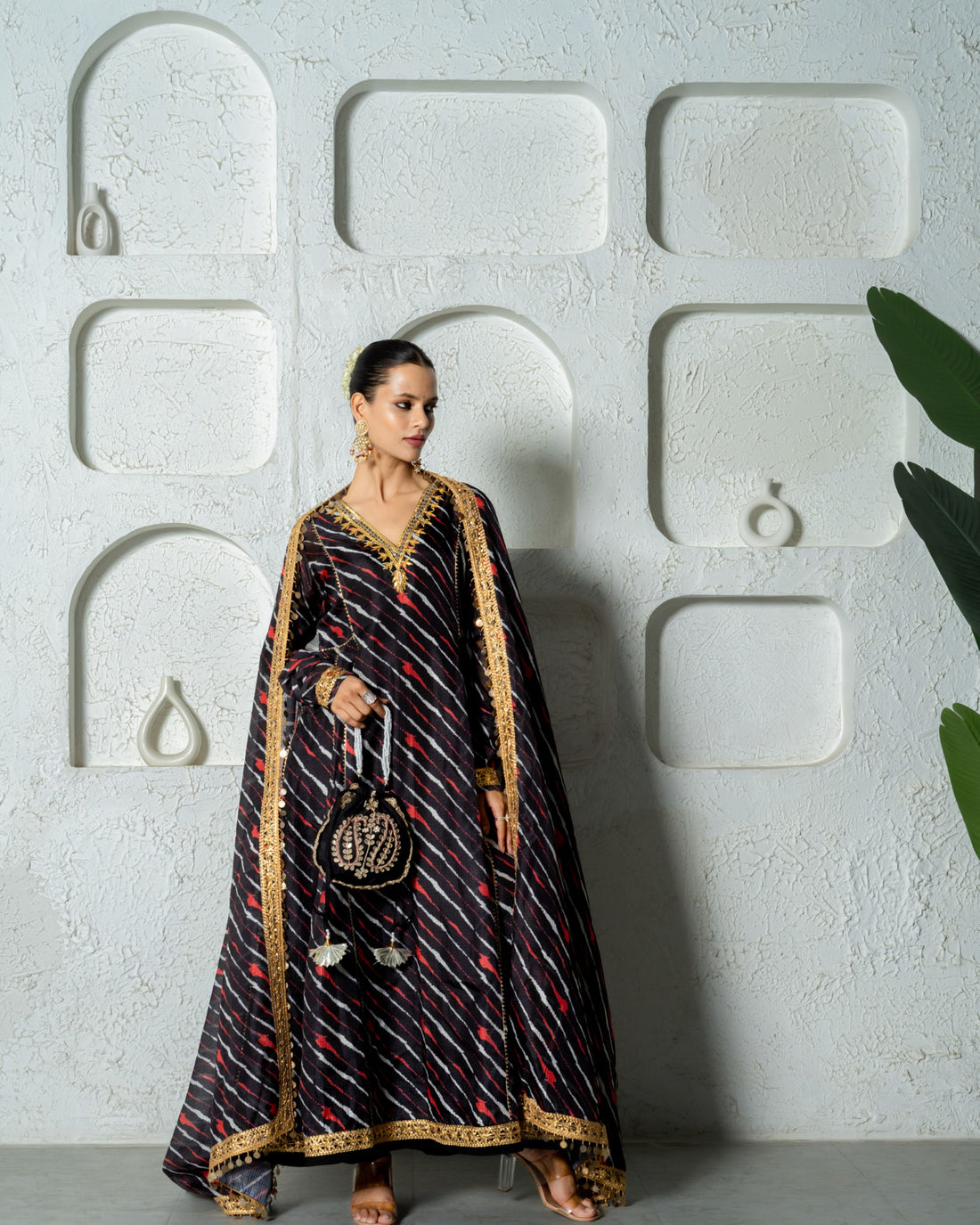 Black Chanderi Digital Floral Printed & Hand Embroidered Kurta Set
