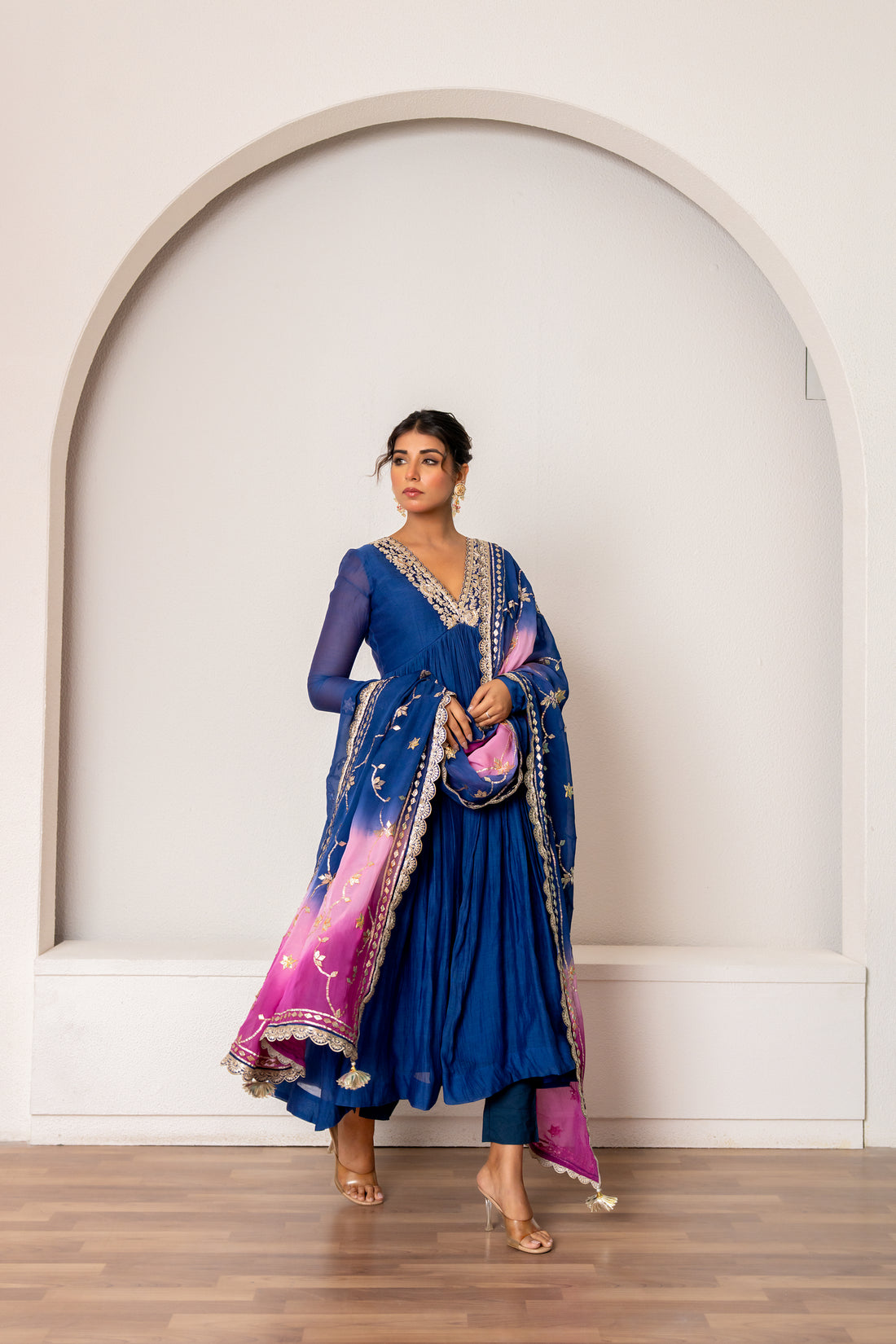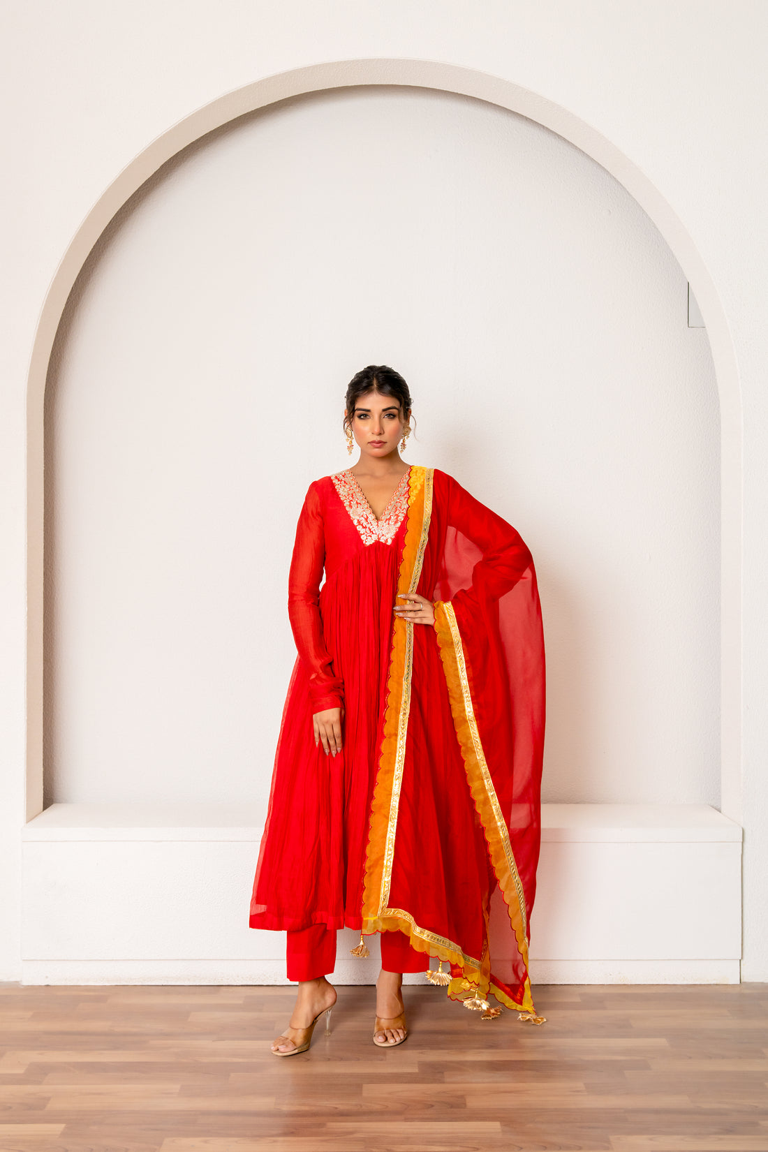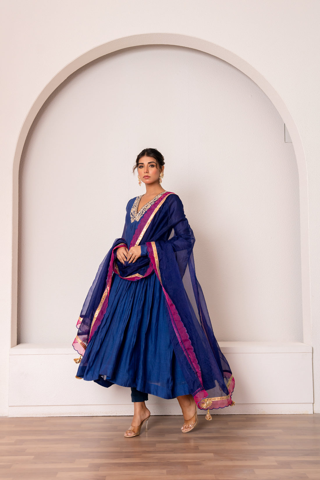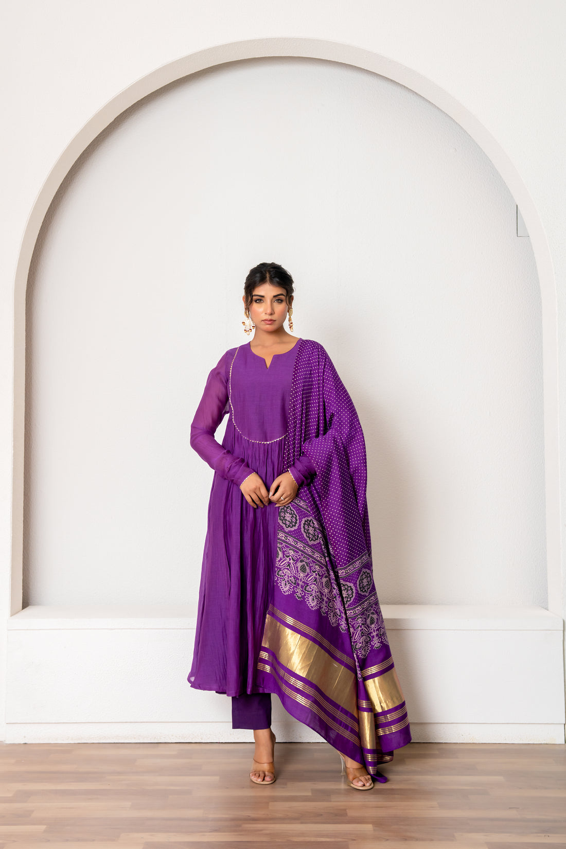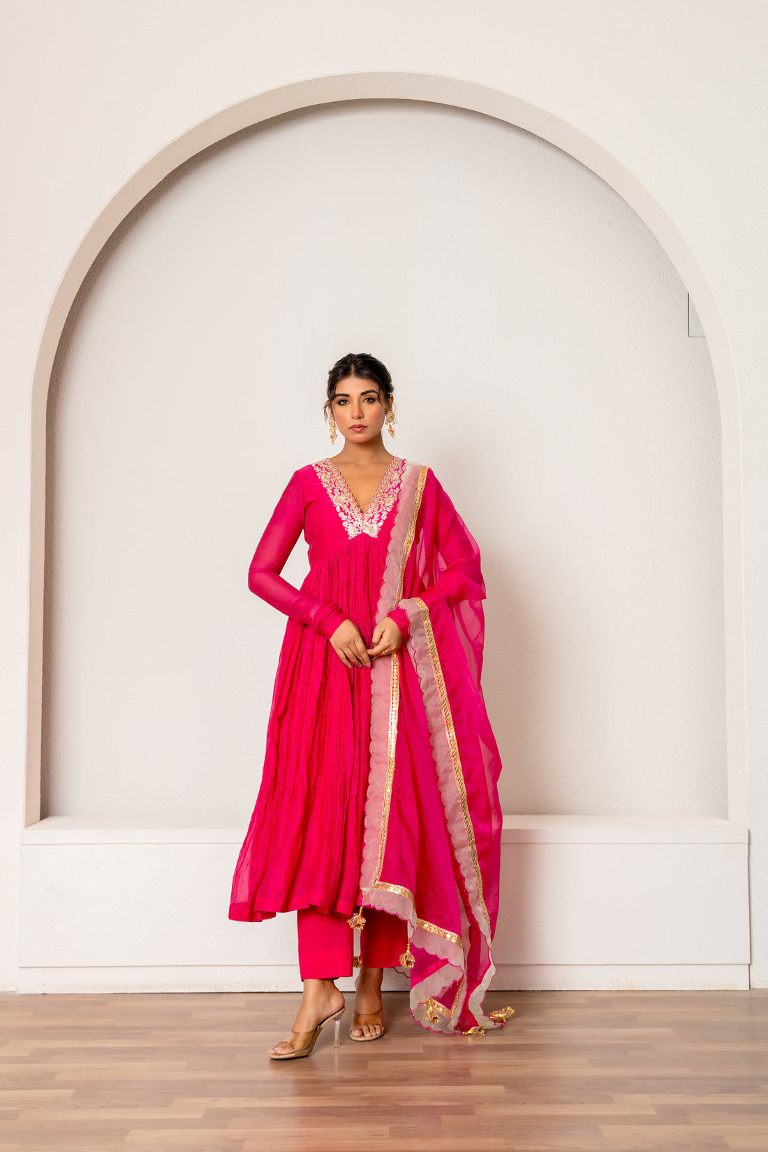 Neon Green Pure muslin handblock Printed Anarkali Set