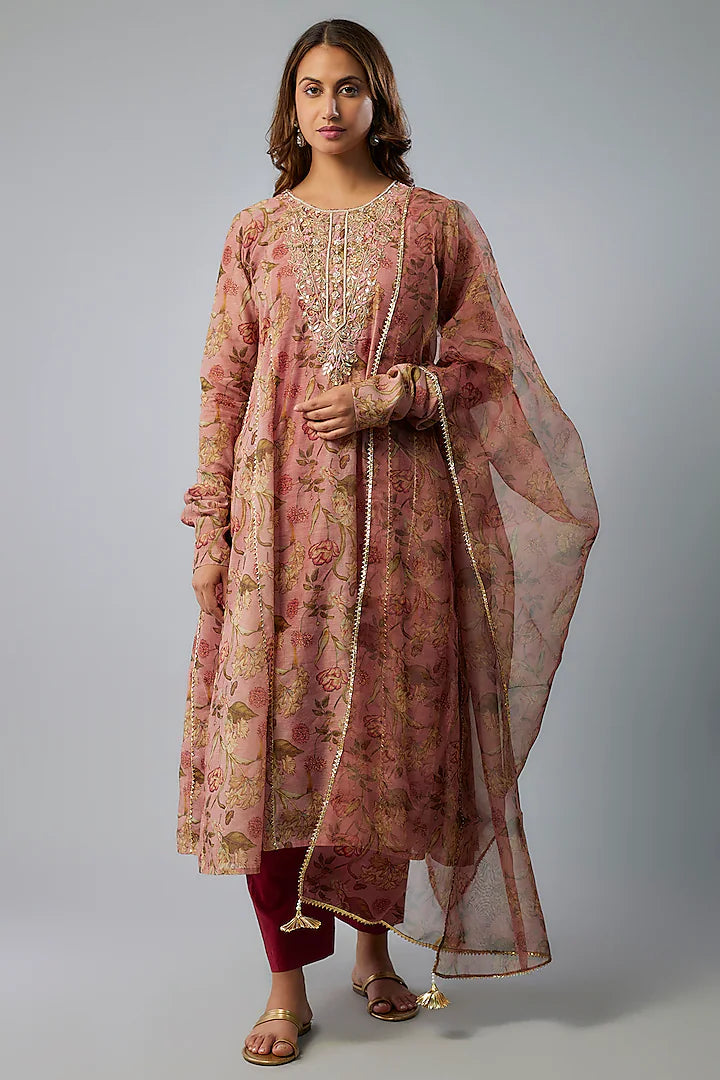 Multi-colored Chanderi Floral Printed Anarkali Set - 3