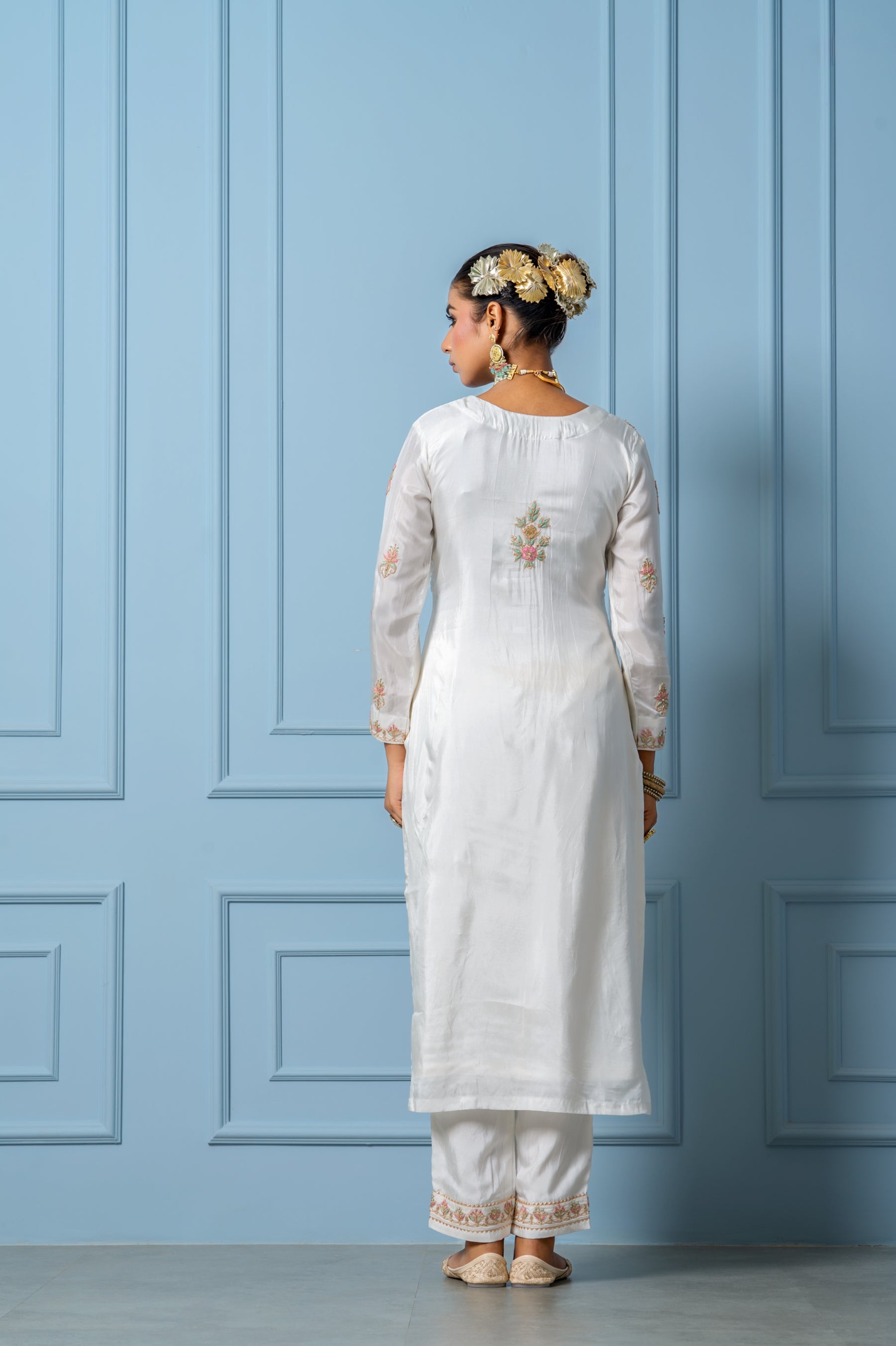 Ivory Pure Spun Silk Hand Embroidered Kurta Set