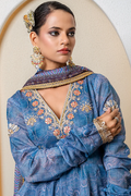 Navy Blue Chanderi Digital Printed Anarkali Set
